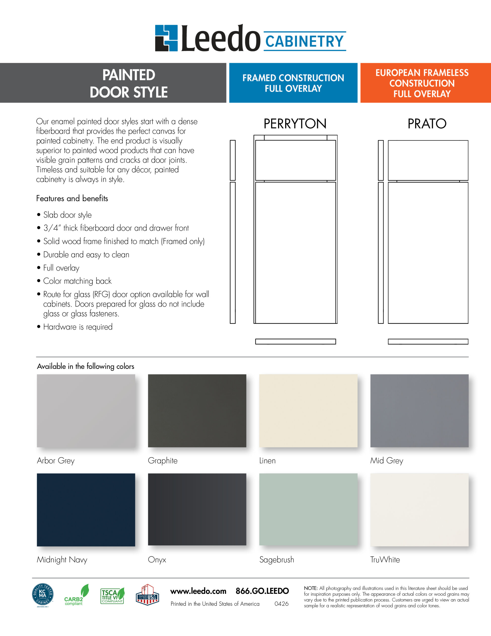 - 3/4” thick fiberboard door and drawer front