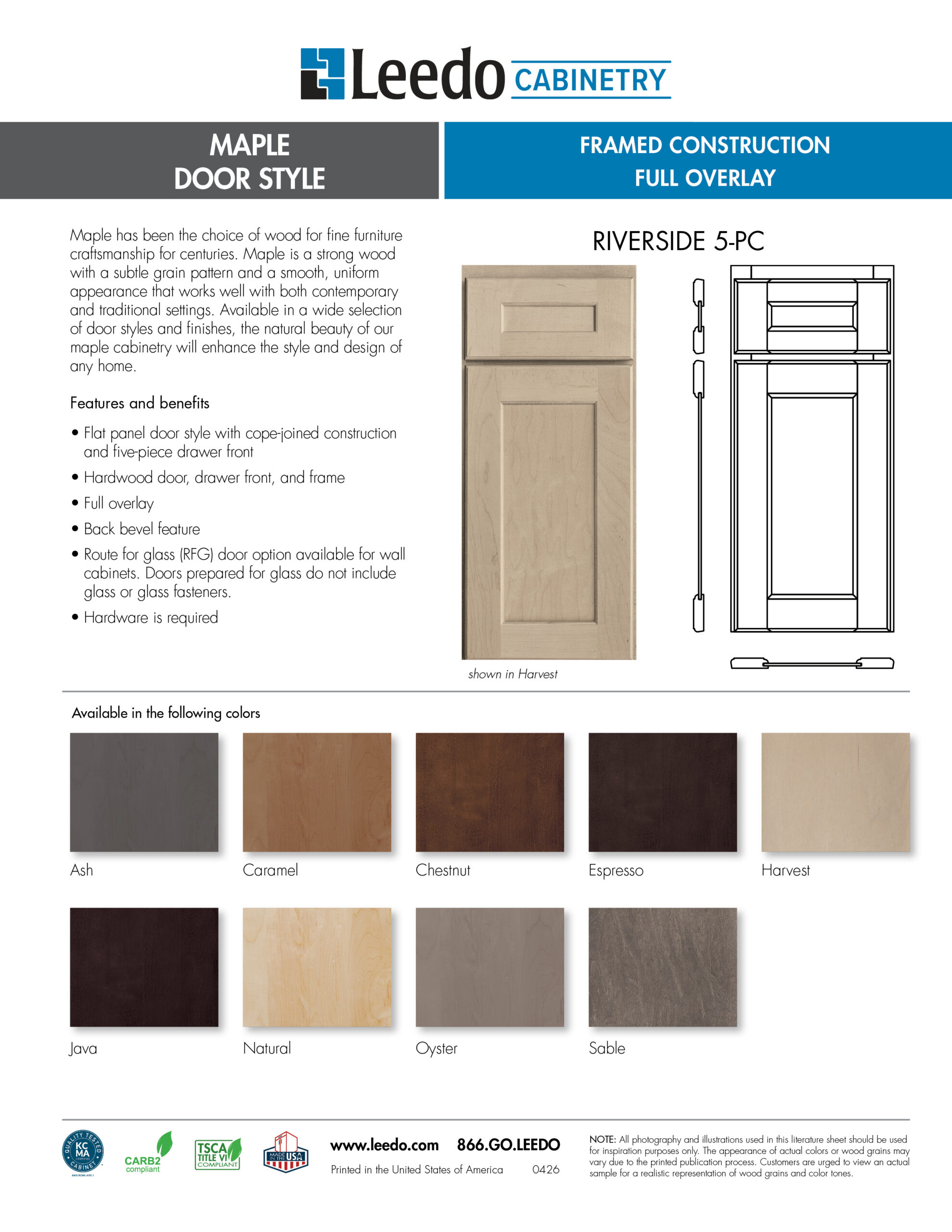Also available in paint finishes. NOTE: Small or hairline cracks on painted wood product may become visible at connecting joints. Please refer to painted finish disclosure.