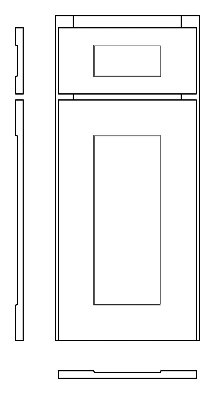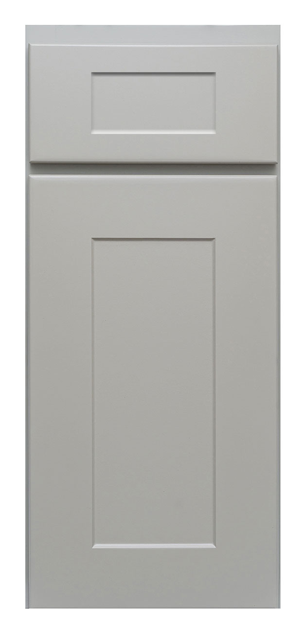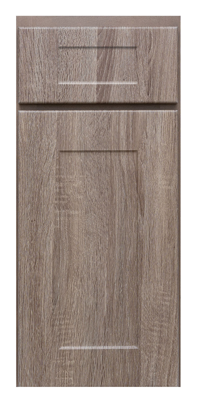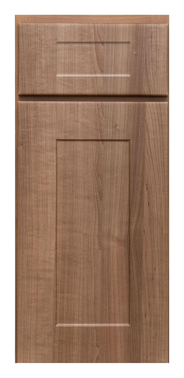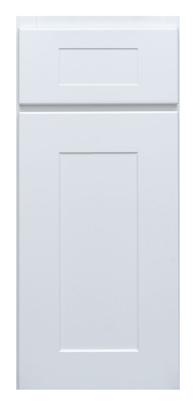 - 3D laminate flat panel shaker door style with routed shaker style drawer front